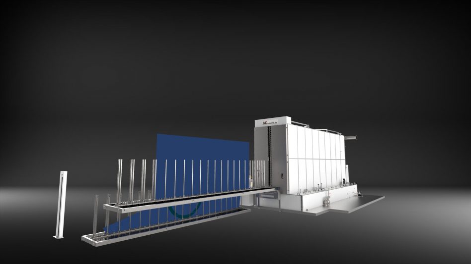 Ein Förderband und ein Hubtisch erleichtern den Transport der Teile in die Arbeitskammer.